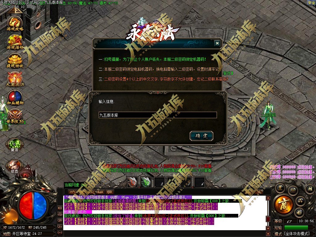 地图介绍:1~3大陆为刷货币地图,4~5三小时刷新必爆怪爆超级装备,6大陆二小时刷新必爆怪(爆一切装备,包括终极剑甲)
